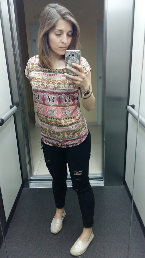 Camiseta de viscosa de SheIn (10€) del verano pasado y alpargatas de GAP compradas en EEUU.