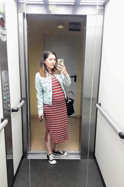 Como veis, con un poco de ingenio se puede utilizar la ropa normal sin tener que gastarnos un dineral en ropa premamá, aunque imagino que según vayan pasando los meses será cada vez más difícil...iremos viendo.