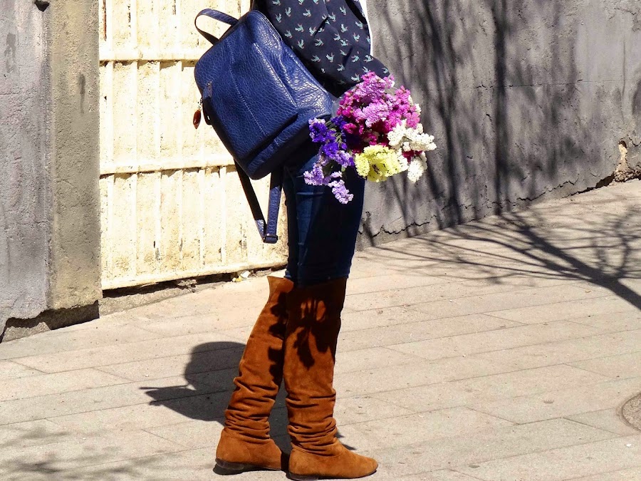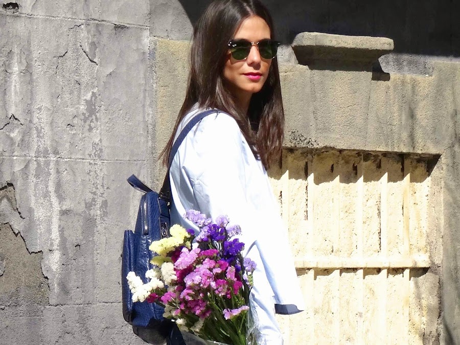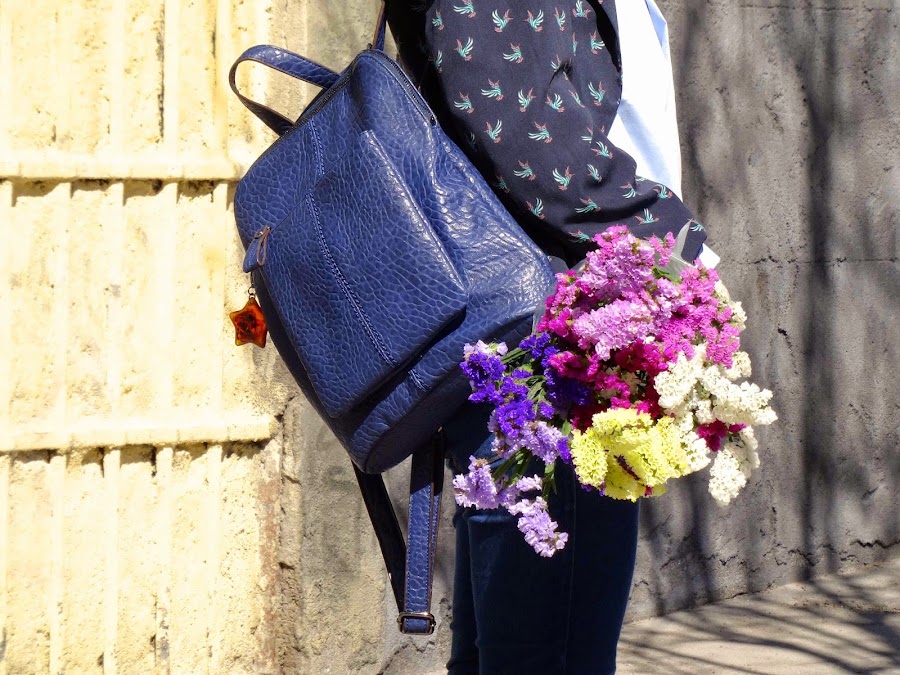 Y como pieza estrella, llevo esta mochila de piel azul de Salvador Bachiller. Esta mochila ha sido mi salvación. Al ser freelance me recorro Madrid con el portátil a cuestas, además de dolerme la espalda, siempre llevaba las manos ocupadas con la bolsa del ordenador. Pues nada, con esta mochila ni me entero del peso y además voy mucho más liberada. Estoy feliz con ella.