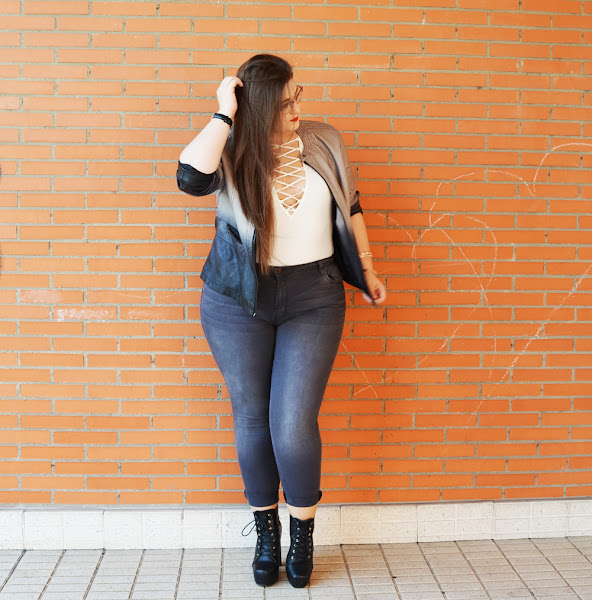 El otro día os mostraba mi nueva chupa en tono granate, y hoy en cambio os muestro esta que ya tiene conmigo un tiempo, en degradé gris. Amo esta chaqueta, adoro lo original que es al jugar con el degradado. Mencionando también, que ya que el degradado deja el tono mas oscuro abajo, estiliza más.
