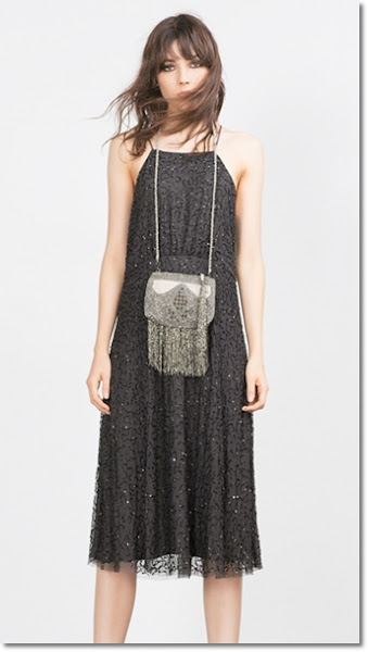 Si te decides por un vestido diferente, a lo mejor te gusta éste de lentejuelas estilo boho. Lo tienes en Zara por 59,95€.