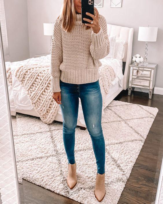 Opciones de looks con suéter cuello alto y mom jeans Si eres una mujer llenita te recomiendo que evites este tipo de suéter, pues le dará más volumen a tu cuerpo.
