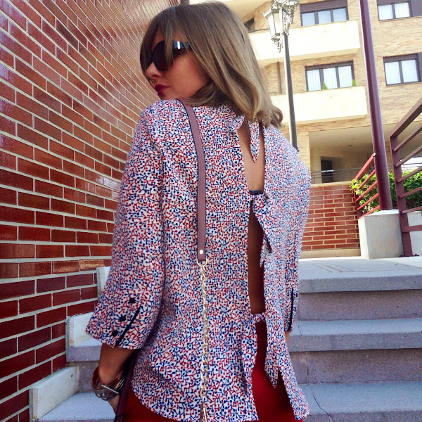 Yo nunca había utilizado ninguna pero ésta me gustó por todo, el estampado, los lazos traseros, tanto fué así que también se vino a casa el pantalón igual. Tengo muchas ganas de utilizar juntas ambas prendas en un look combo pero de momento decidí combinarla con estos otros pantalones. Para el día a día me parece una combinación menos arriesgada, ¿verdad?.