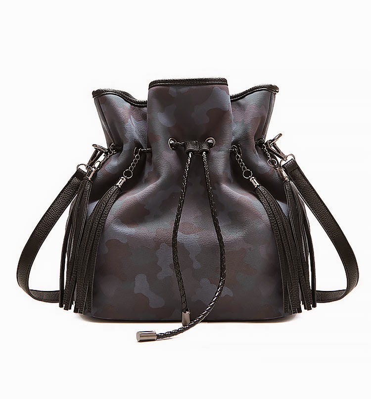 Siempre me han gustado los bolsos estilo saco, este con estampado militar me parece perfecto para muchas ocasiones. Lo he elegido en tonos azules y marrones porque me parece más discreto que el militar verde, más combinable y más versátil.