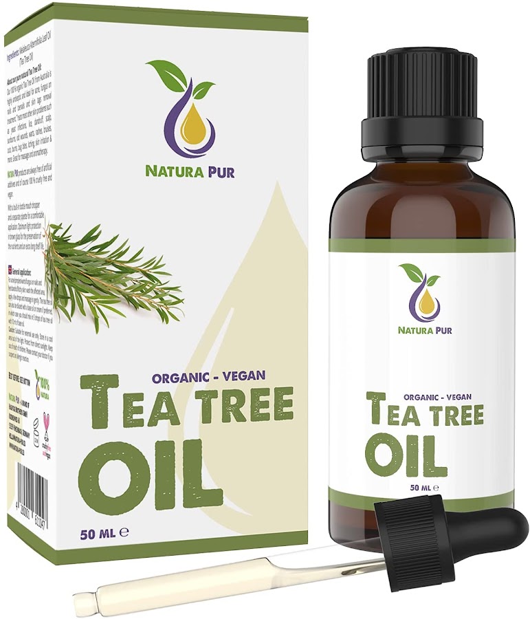 Aceite Arbol del Te BIO 50ml con pipeta - 100% orgánico y puro Tea Tree Oil - Tratamiento antiacné para cara y cuerpo - Aceite esencial de Árbol de Té