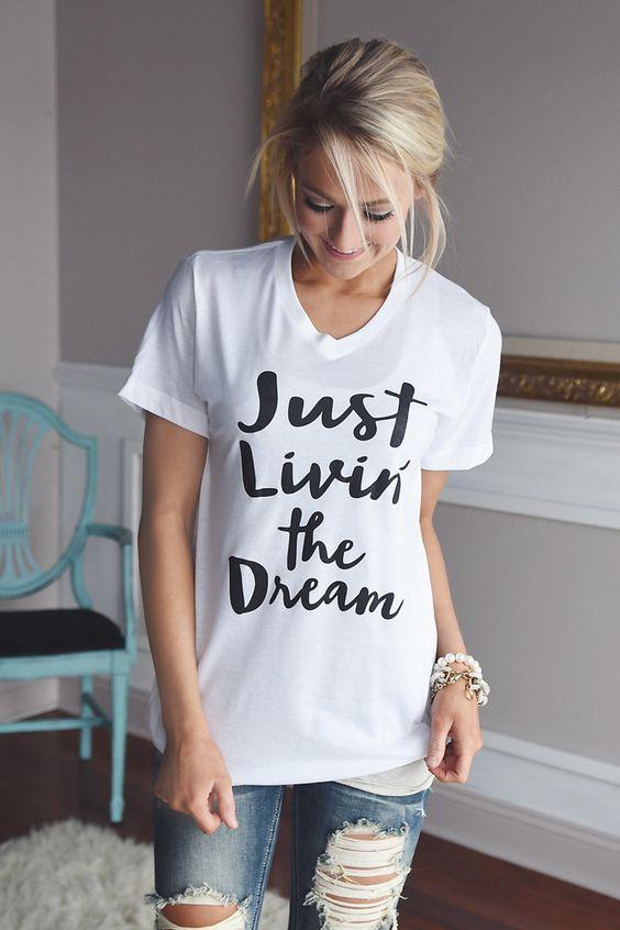La última moda, es llevar camisetas con mensajes, puede ser de ua marca, o un mensaje propio, hecho en una litografía local.
