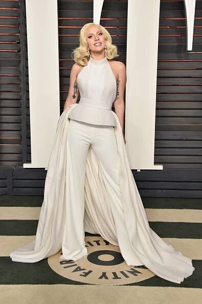 Luego vemos a Lady Gaga usar este hermoso traje en la alfombra roja.
