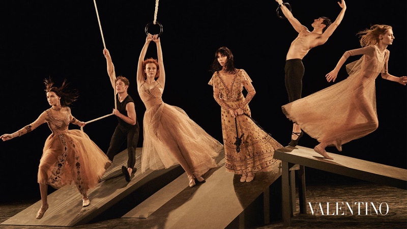 Las top Kaitlyn Aas, Karen Elson, Jamie Bochert o Julia Nobis emulan poses de bailarina que se centran principalmente en el movimiento de los brazos, dando movimiento a los vestidos de corte romántico en tonos beige, negro y verde, los ¿¿modelos - bailarines??? masculinos en mallots de ballet negro.
