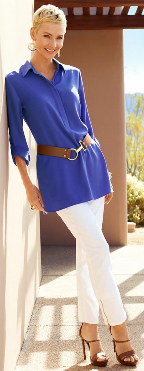 Sobre unos pantalones de vestir tienes un look elegante y puedes usarlo para asistir a un evento formal como un coctél, por lo que puedes irte directo de tu trabajo a un evento de tarde o de noche; si le agregas un cinturón o unos accesorios llamativos tendrás un estilo diferente.