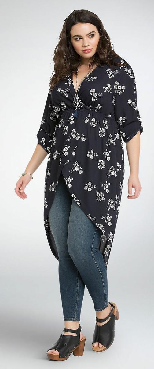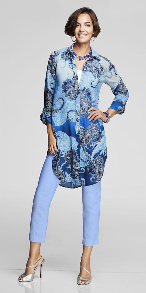 Puede llevarse abierta como una blusa corriente o cerrada como una túnica. Puede llevarse justo por debajo de las caderas o tan larga como hasta el tobillo.
