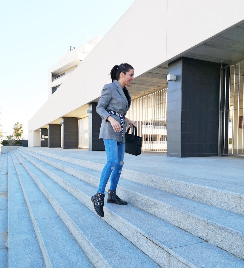 Animal print, rayas, con grandes hebillas, colores brillantes como el flúor o como en mi caso con mensajes, harán que tus blazer de siempre alcancen otro nivel.
