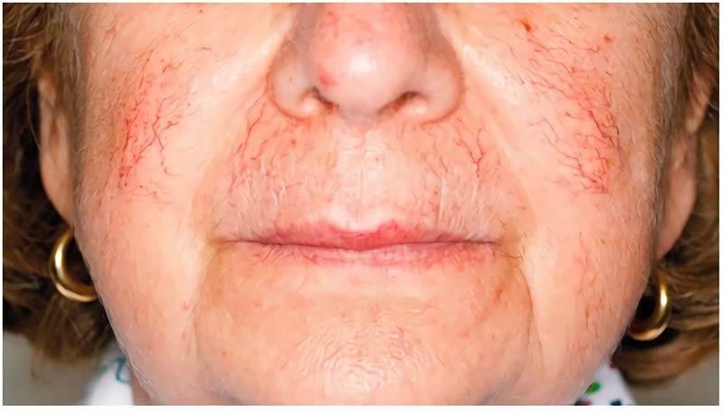 Los vasos sanguíneos de la dermis se fragilizan, presentan telangiectasias dilataciones de las paredes de los capilares en formas de redes.