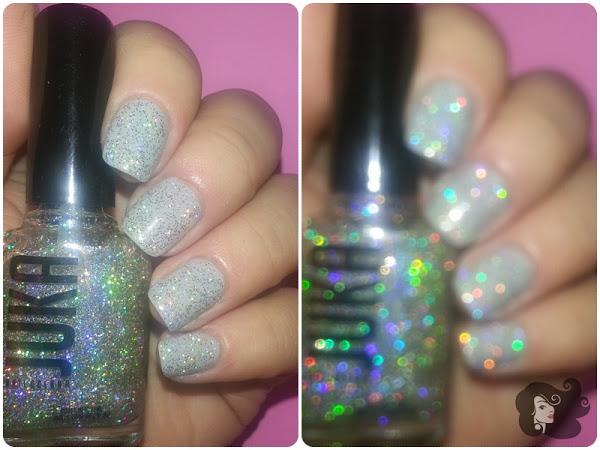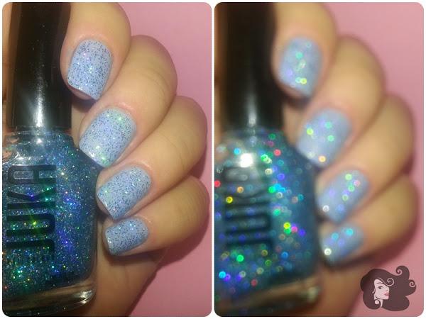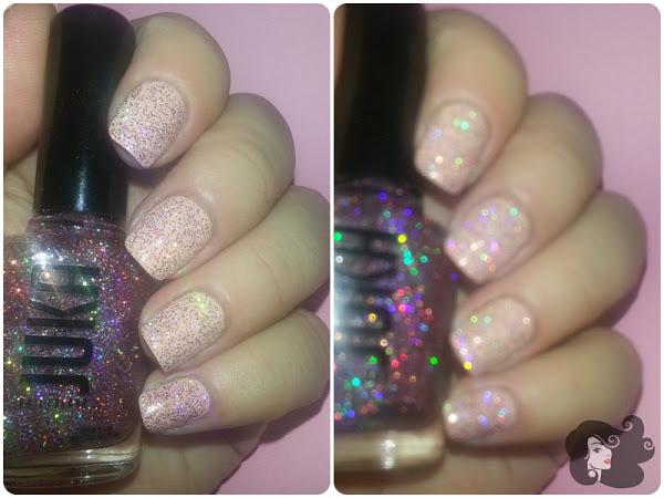 Después de advertirlas y antes de empezar a mostrarles estos glitters holográficos les cuento que, aunque ya saben, los glitters holográficos son difíciles de fotografiar, así que en el intento de mostrarles lo hermosos que son pensé en mostrárselos en dos fotos, enfocada y desenfocada para que puedan ver como les holografiquea (?) las uñas!