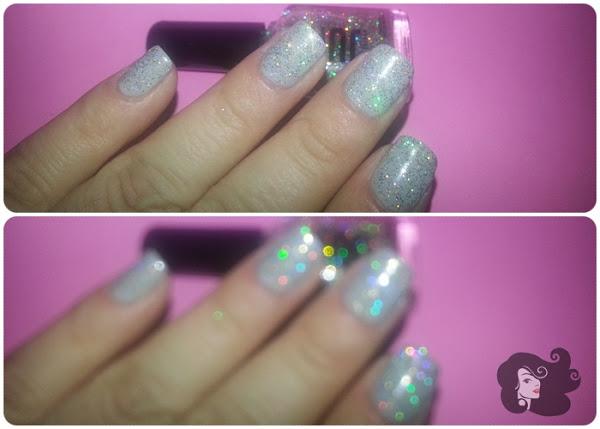 Lo positivo: SON HOLOGRÁFICOS!!! Ya con eso no necesito nada más, pero la verdad es que también secan rapidísimo y una vez secos no quean rugosos, osea, no se sienten los glitters en la uña, pero si se ven... y como!!