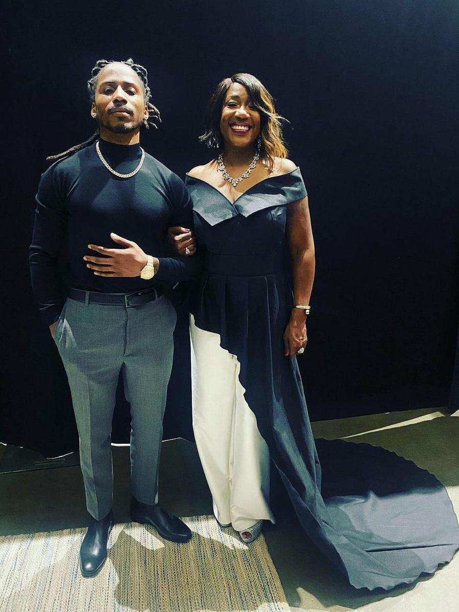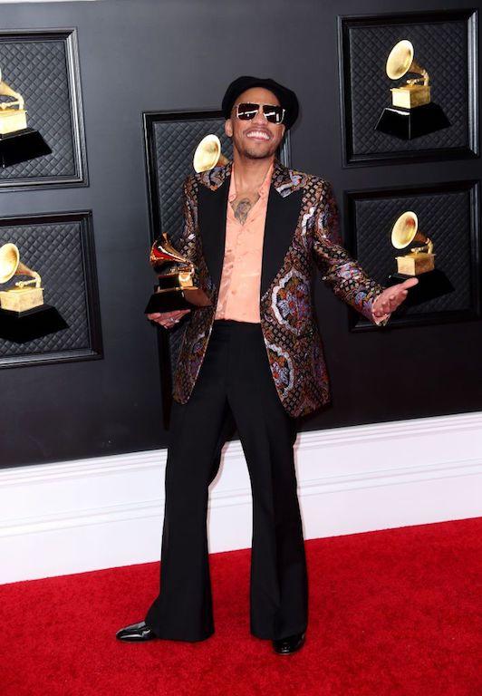 Por su parte, Anderson Paak lució una original americana con print y una camisa color melocotón, también de Gucci.