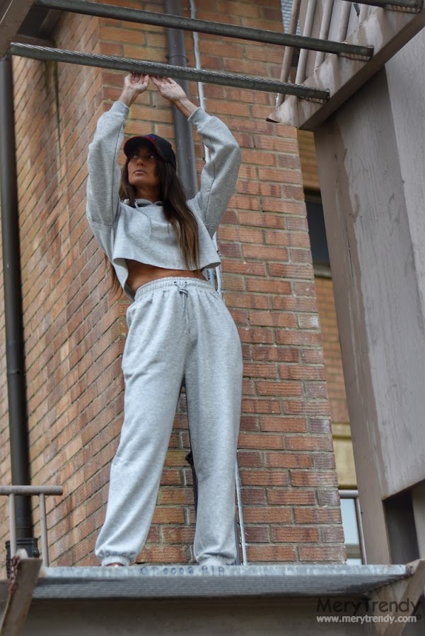 Grey Marl Cropped Hoodie & High Waisted Jogger Loungewear Set - Alia