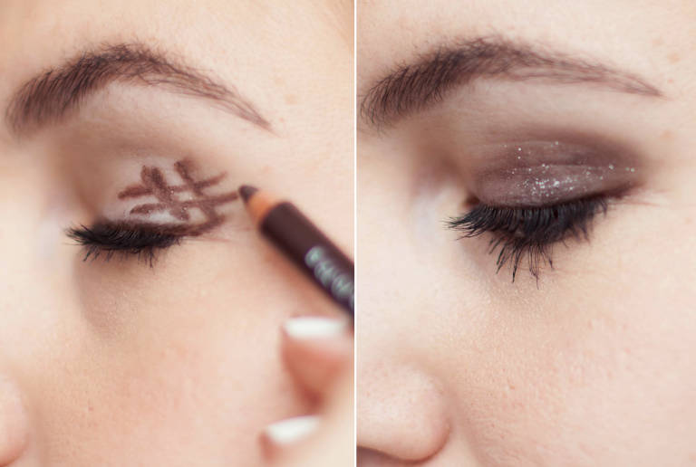 En tan solo dos pasos crea este efecto, con tan solo un lápiz de ojos dibuja un hashtag (#) en la esquina exterior del parpado y difumina.