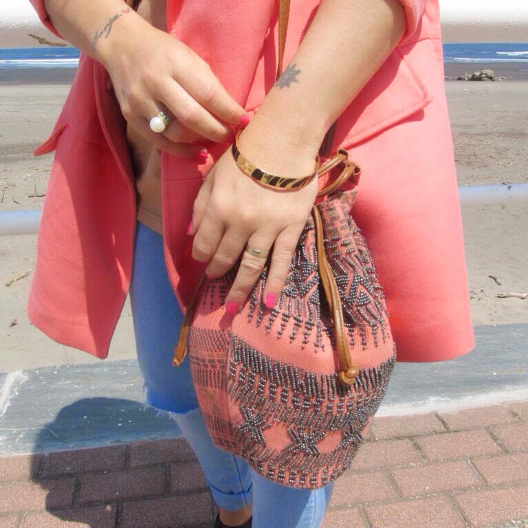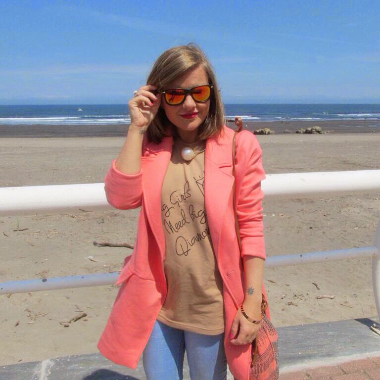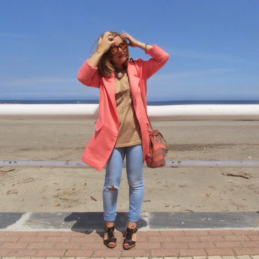 Además de por su frase la elegí por el color. No tenía ninguna en éste tono y la verdad que es muy combinable. En éste caso, elegi tonos corales para estrenarla un precioso día que pase junto a mis chicos paseando por San Juán de la Arena. Es un look sencillo para pasar un día en familia.