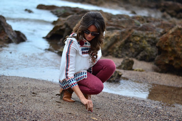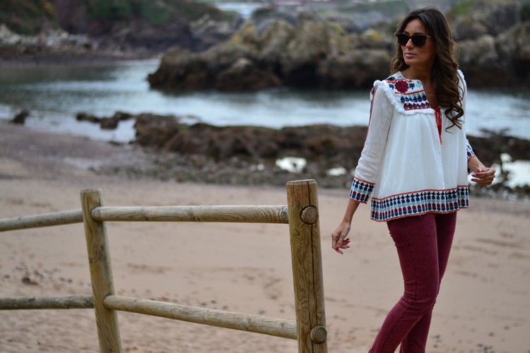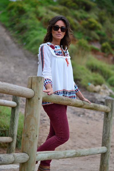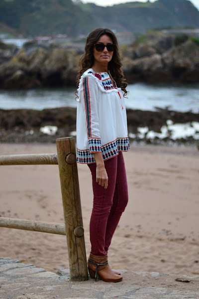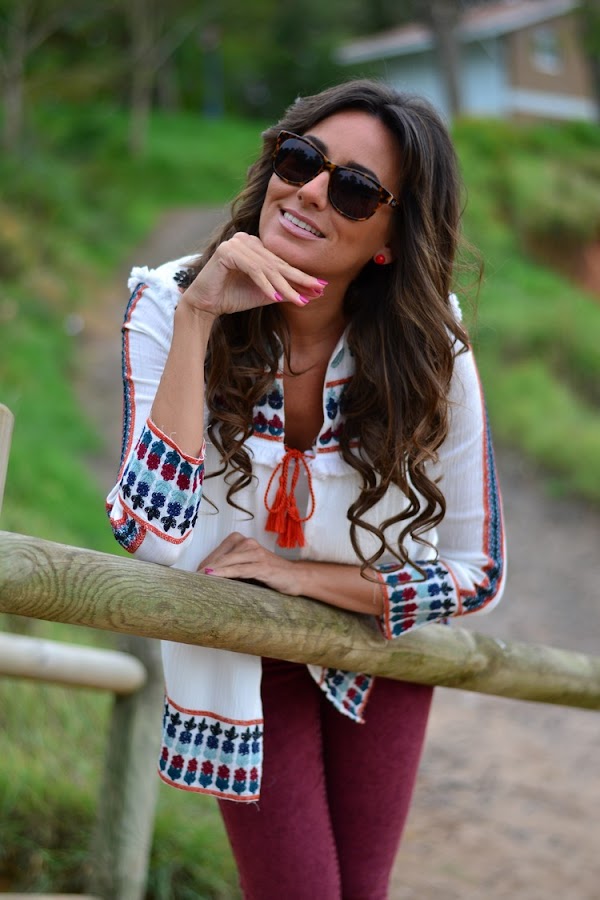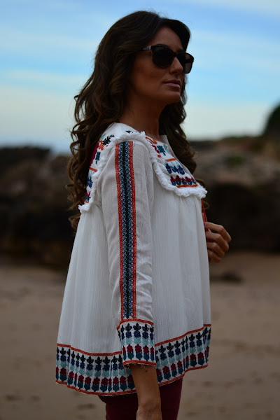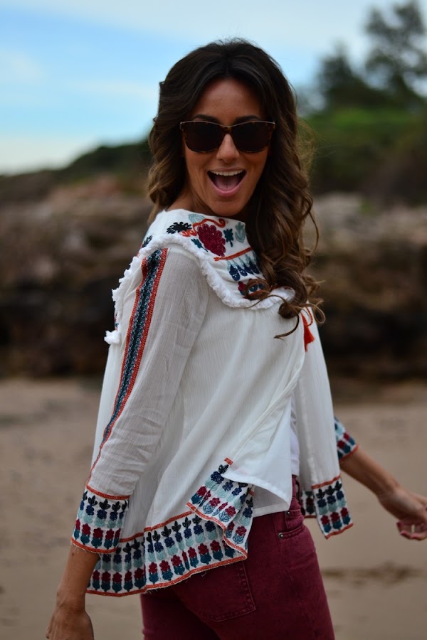 En color blanco, de manga francesa, bordada con flores en diferentes colores y con dos cuerdas para atar en la parte del escote, en su día se me hizo una prenda de lo más apetecible para esos looks propios del los últimos días del verano, pensando en que podría protagonizar muchos de mis outfits del final de la estación, pero lo cierto es que a estas alturas, su comodidad y su favorecedor colorido ya no son suficientes atributos como para que, la que fuera "la famosa prenda del momento" no hace mucho tiempo atrás, me haya saturado un poco al haberse convertido en una plaga que nos ha llevado a "uniformarnos" a todas.
