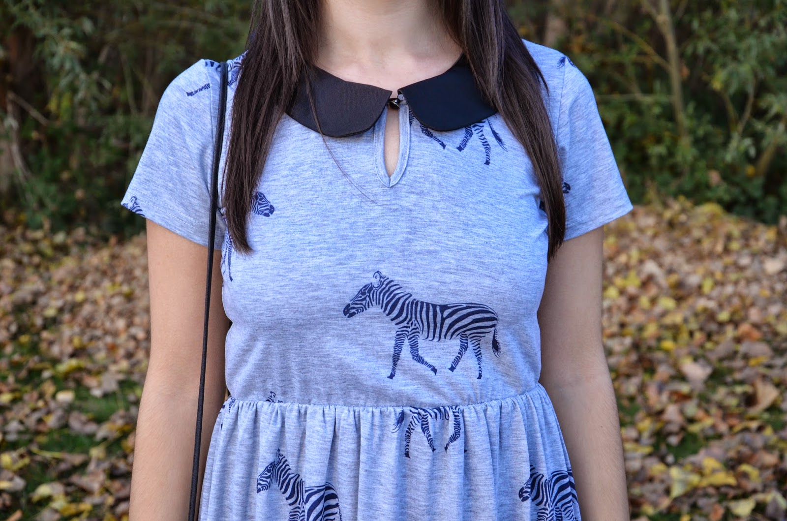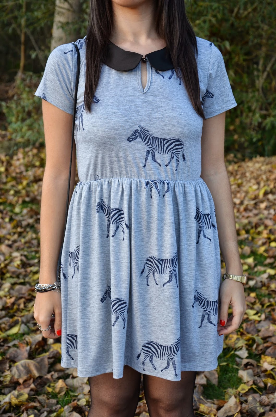Hoy os traigo un outfit muy preppy con este original vestido de cebras de la tienda de moda online Oasap!!! Es un vestido de los mios jejeje, con un estampado muy alegre y con cuello de bebe en negro que se abotona en el centro.