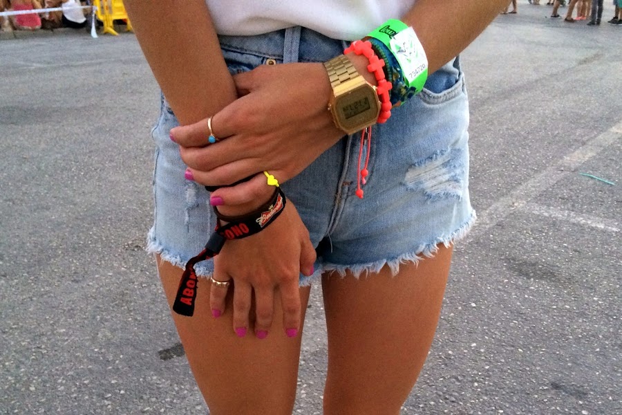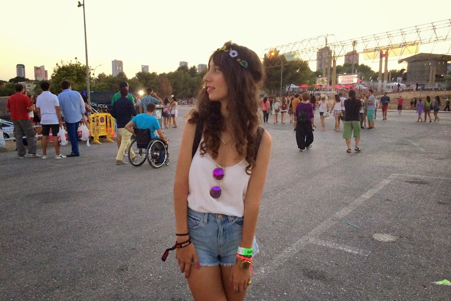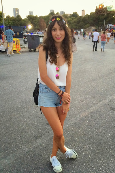 ¿Cómo va el mes de Agosto? Yo no me puedo quejar, pasa volando y más de vacaciones. Pues no he podido subir post antes, ya sabéis como es esto de no estar en casa... Bueno, hoy os dejo el look que lleve el segundo día en el Low festival. Ese día quería ponerme esa diadema de flores que me compré así que me puse shorts con esa blusa blanca de pull&bear que le robe a mi hermana pequeña. Al final me encanto como quedo el conjunto, ¿a vosotros/as qué os parece? Ya sabéis que me gusta saber vuestra opinión. Este día pudimos escuchar por Benidorm grupos como Massive attack, Editors, The horrors, Yuck, Second, Xoel López, y muchos más. De todos, yo me quedo con Editors, así que os dejo abajo una canción para quién quiera escucharlos. Gracias por visitarme y leerme. Un besito.