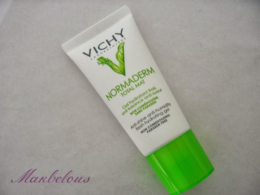 Vichy Normaderm total mat antibrillos y antihumedad 30ml: Se trata de un gel fresco con micro-polvos de efecto secante para pieles grasas, con brillos, sensación de piel húmeda y/o pegajosa. Además lleva en su formulación agua termal de Vichy (calmante y emoliente) y ácido salicílico, que hace una renovación superficial evitando que las células muertas y la grasa obstruyan los poros evitando así la aparición de comedones y puntos negros. Es hipoalergénica, no comedogénica y sin parabenos pero si contiene phenoxietanol.