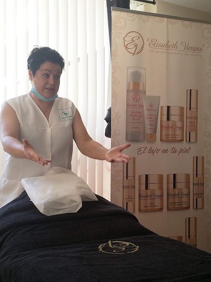 Maria José de Elisabeth Vargas nos hizo un análisis de piel a cada una de nosotras y nos realizó un tratamiento personalizado a cada una de nosotras enfocados a suplir nuestras carencias y con ello frenar el antienvejecimiento. Pero no sólo esto, sino que aparte el tratamiento iba personalizado y adecuado también a cómo teníamos nuestras emociones. A todas nos sorprendió esto y es que... a mí nunca me habían hecho esto en ningún otro centro.