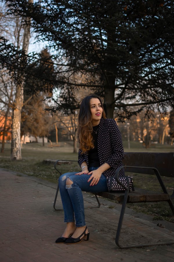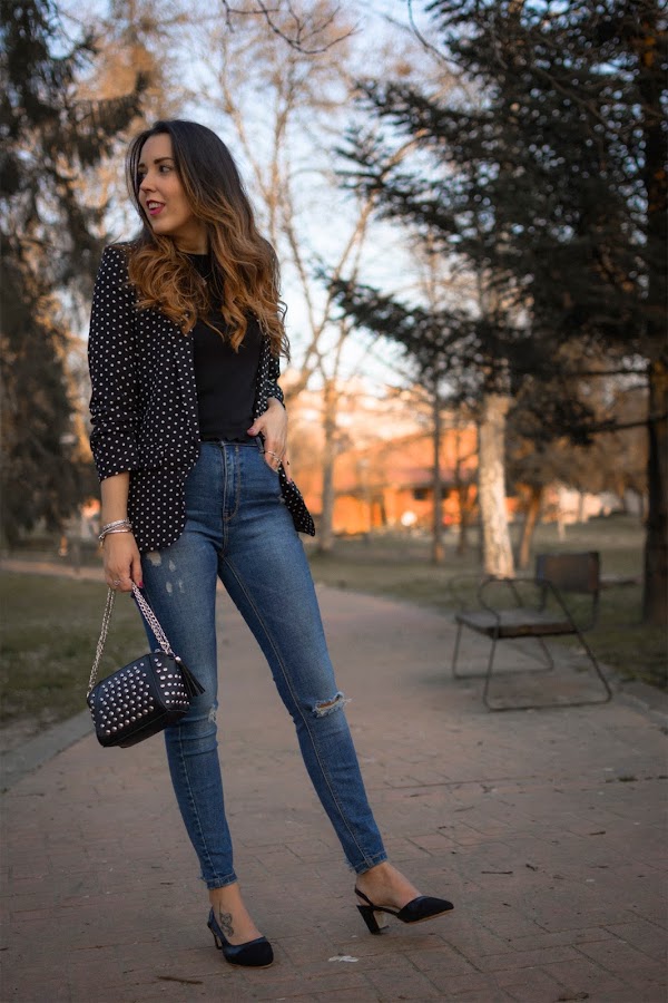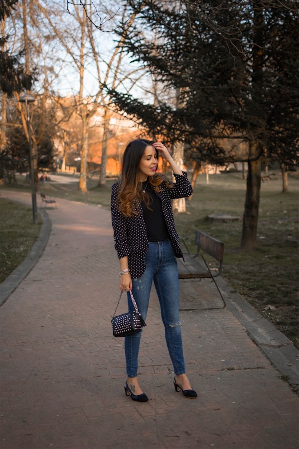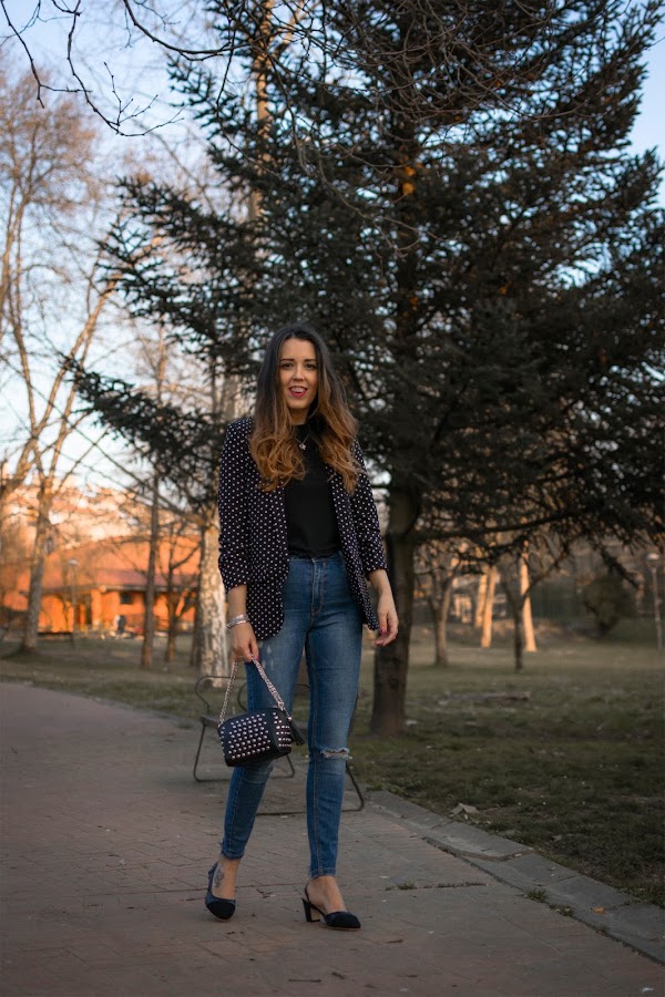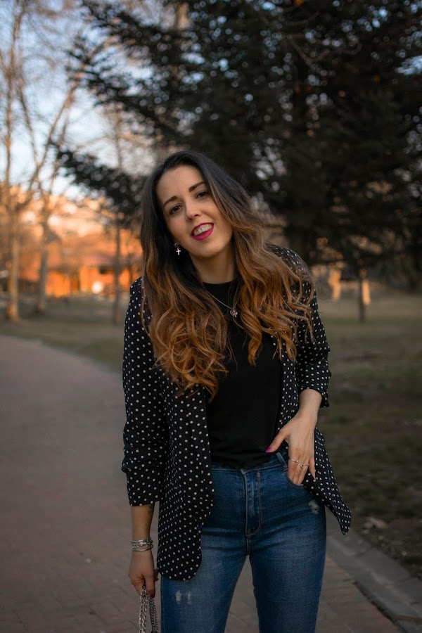 Que los lunares son tendencia, no es una novedad. Os lo contaba hace unos días por aquí donde os enseñaba una de mis propuestas de como llevarlos y hoy, vuelvo a llevarlos. Esta vez de un modo diferente y muy vistoso, pero también, con un aire elegante.