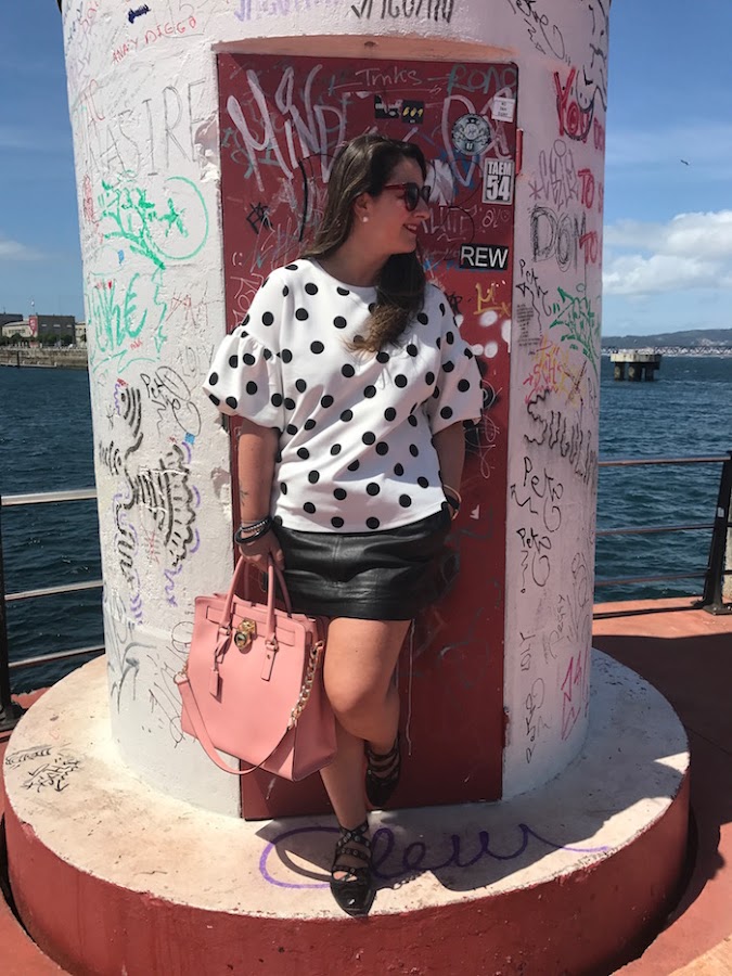 De todas y todos es sabido que los lunares, los volantes y el sur me vuelven loca. Pues aprovechando que ha sido la feria de abril he optado por vestirme con mi nueva camiseta de maxi lunares y con manga farol que me enamoró desde el minuto uno!