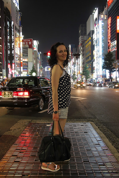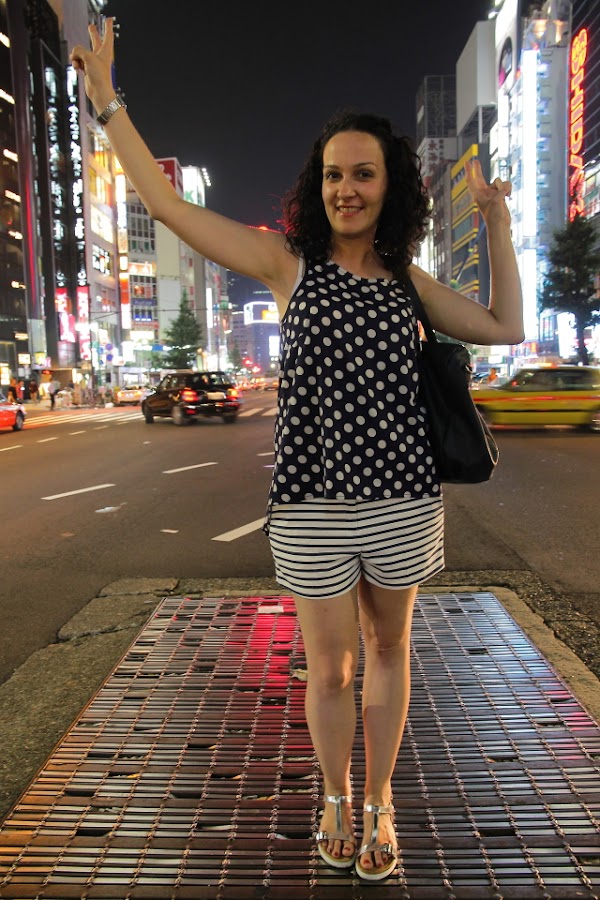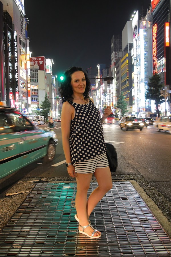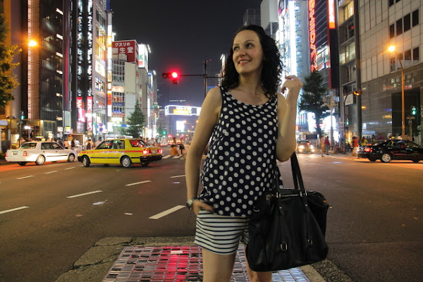 Nuevo post de mis vacaciones en Japón, esta vez desde Tokio, la ciudad de las luces de neón. Las fotos de hoy las hicimos en el barrio de Shinjuku, lugar donde nosotros teníamos el hotel. Actualmente Shinjuku es una de las zonas de ocio más de moda ya que por la noche tiene mucha vida gracias a la gran cantidad de bares y restaurantes que allí hay. Mi cara sin maquillaje deja notar el cansancio que traía después de todo un día de turismo, pero me gustan tanto que no os podía dejar sin enseñároslas. El look que llevo con top de lunares y shorts de rayas me encanta, reconozco que es un poco arriesgado pero a veces me gusta experimentar probando nuevos combos. Lo mejor del outfit las sandalias, cuando me las llevé no sabía si serían muy cómodas pero después de los kilómetros que hice con ellas les doy más que un sobresaliente. Espero que os gusten las fotos tanto como a mi.