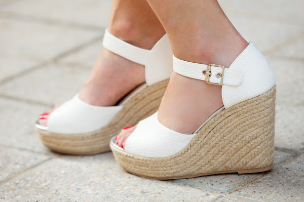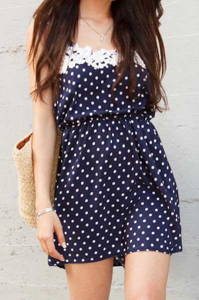 ¡¡De nuevo a lunes chic@s!! ¡¡Hoy os dejo un look que me encanta!! El otro día estrené este ideal vestido polka dots en blanco y azul marino junto con mis preciosas cuñas blancas. ¡Este es el resultado!