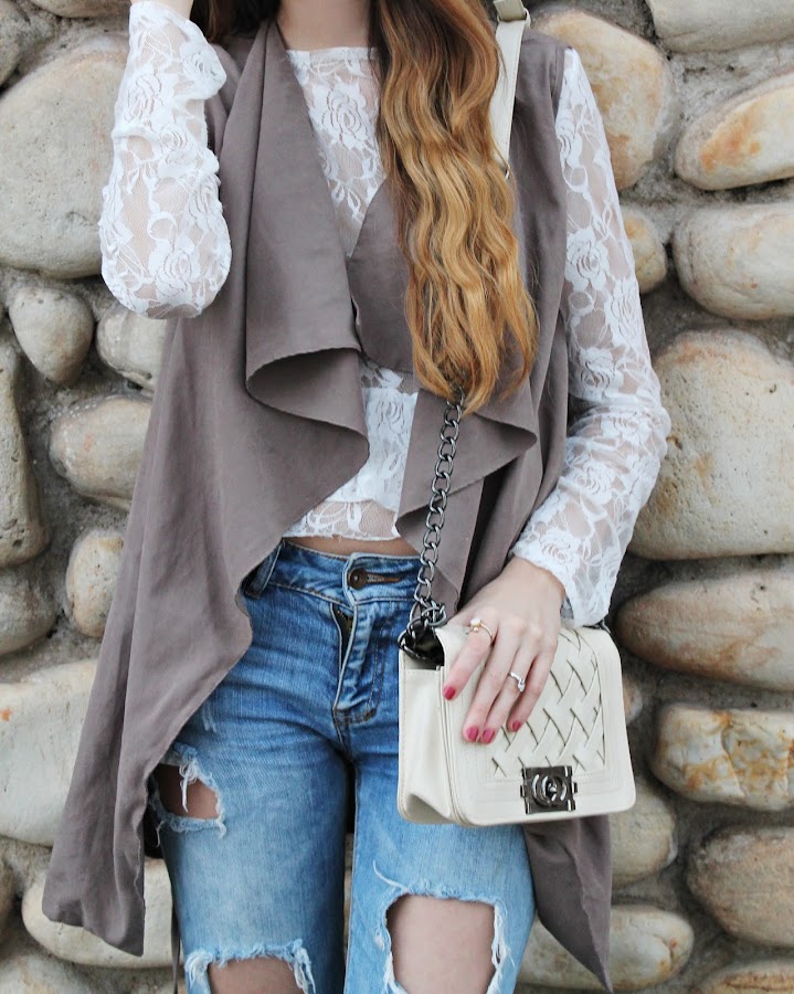 Comenzamos la semana con un look simple pero precioso lleno de esos pequeños detalles que lo hacen especial. Me encanta combinar texturas en los outfits y como pueden notar este no fue la excepción: encaje, gamuza y jean fueron las seleccionadas y me encanto el resultado final.