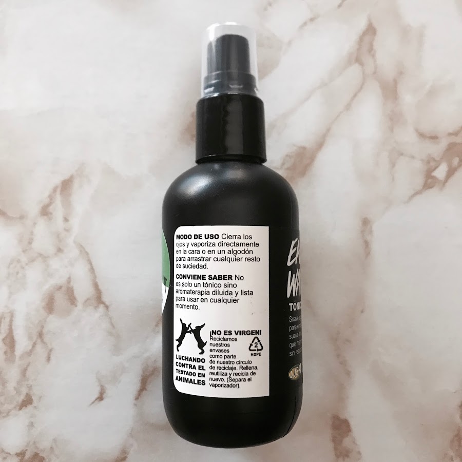 Un punto que me animo a probar este tónico de Lush, es la ética de la marca ya que son productos hechos a mano, no testados en animales, apoyan el comercio justo, reciclaje... Y sus ingredientes son naturales (eso significa una fecha de caducidad más corta ya que no utilizan (o muy pocos) conservantes). Los sintéticos que emplean son 100% seguros.