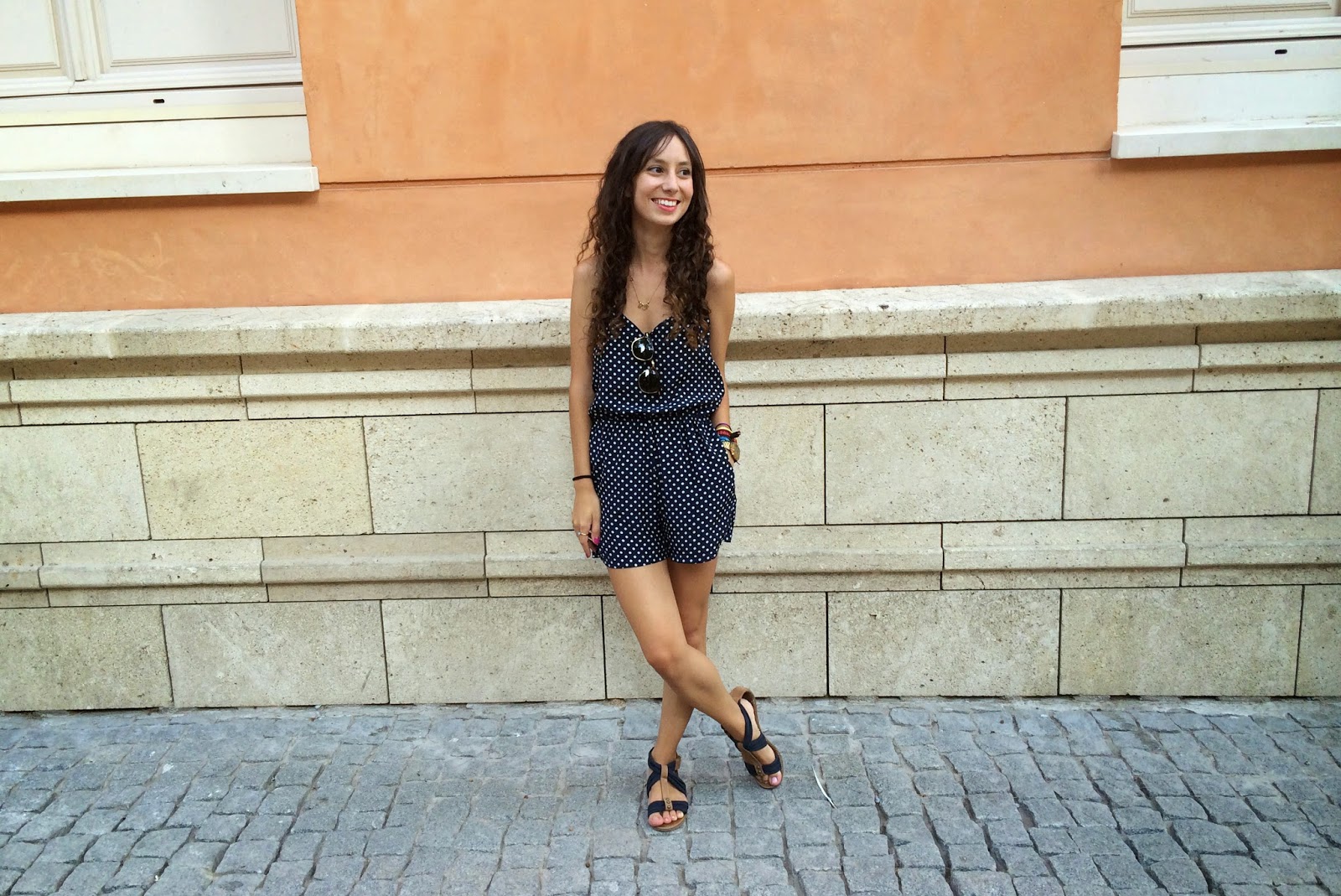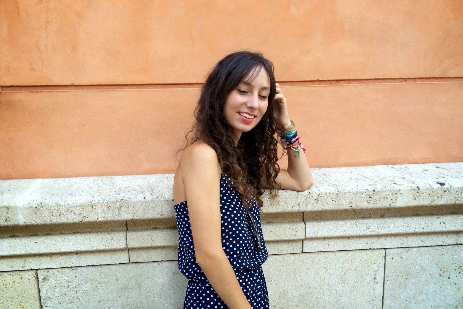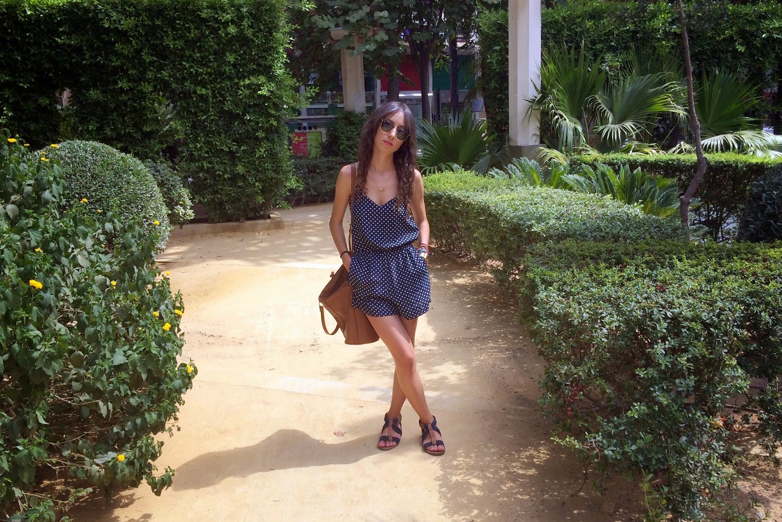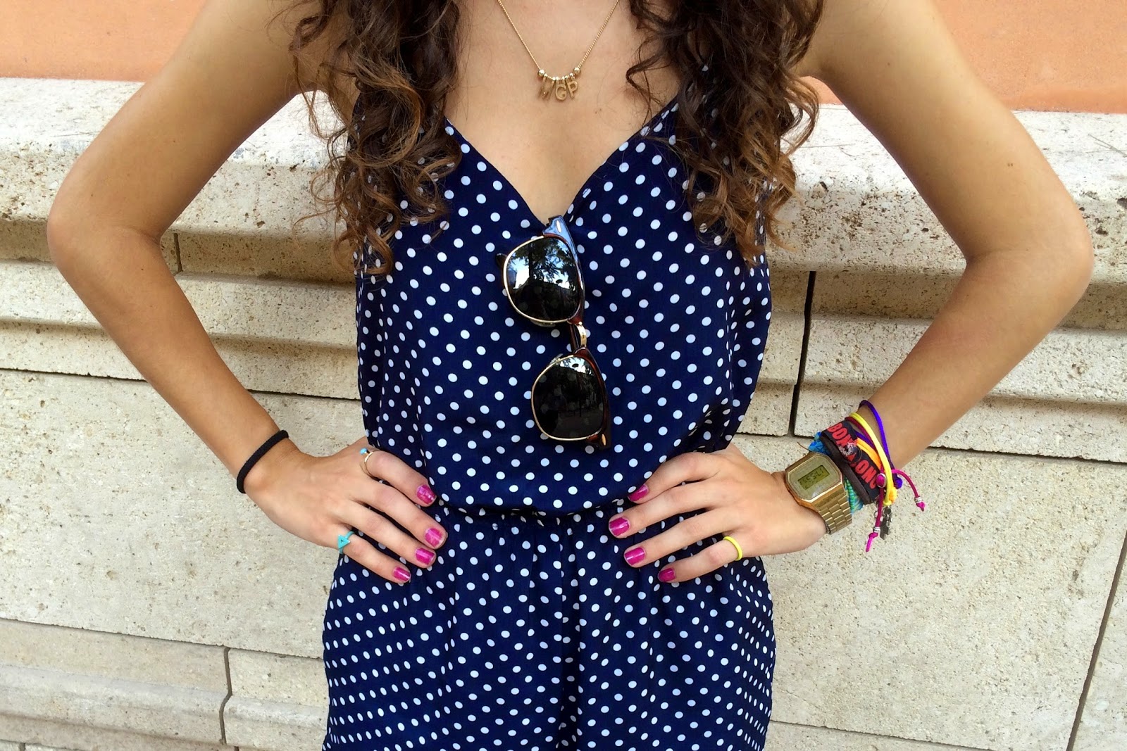 ¿Cómo va la semana? Por Murcia están volviendo a subir las temperaturas alcanzando ayer en algunos momentos casi los 40º. Parece mentira que estemos ya a finales de Octubre y con este tiempo, aunque a mi personalmente me gusta, pero por otro lado estoy deseando estrenar mis cosas nuevas y parece que cada vez se alarga más el día. Pues hoy os dejo este look con mono de topos de Zara, alguna diréis que no pega ya pero, como os he dicho anteriormente, ayer hizo bastante calor por aquí. Lo combine con esas sandalias de pull&bear y ese collar de Bershka que me enamoro cuando lo vi, aunque reconozco que es un poco de quinceañera. Espero que os gusten las fotos y el look. Un beso.