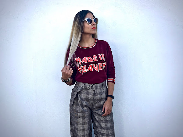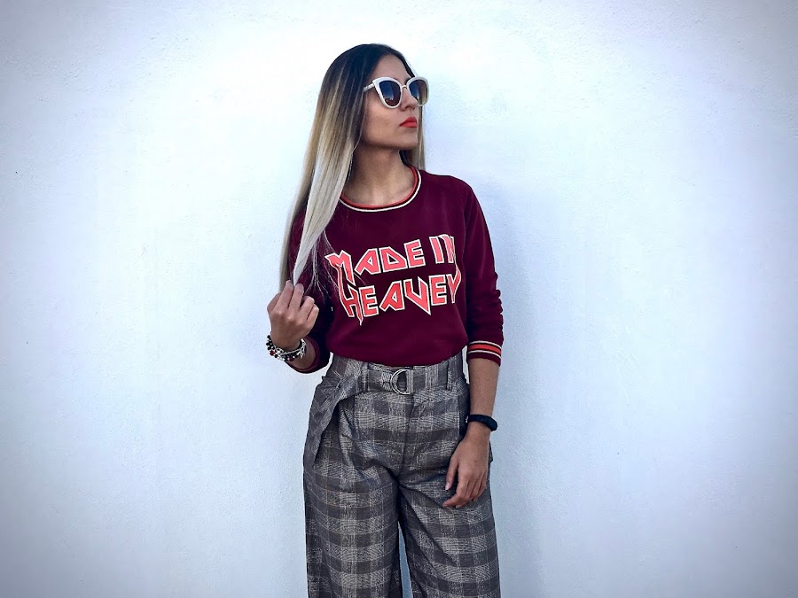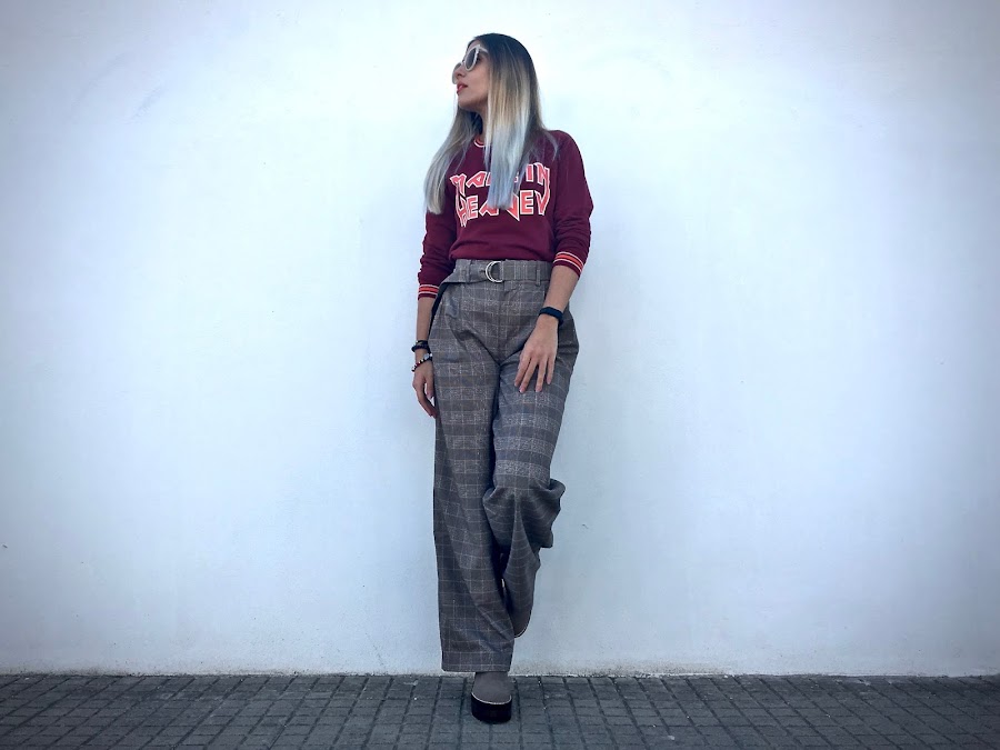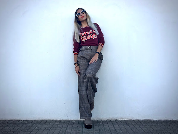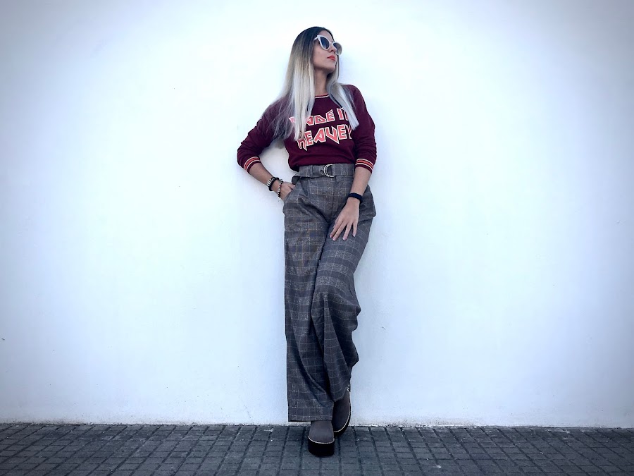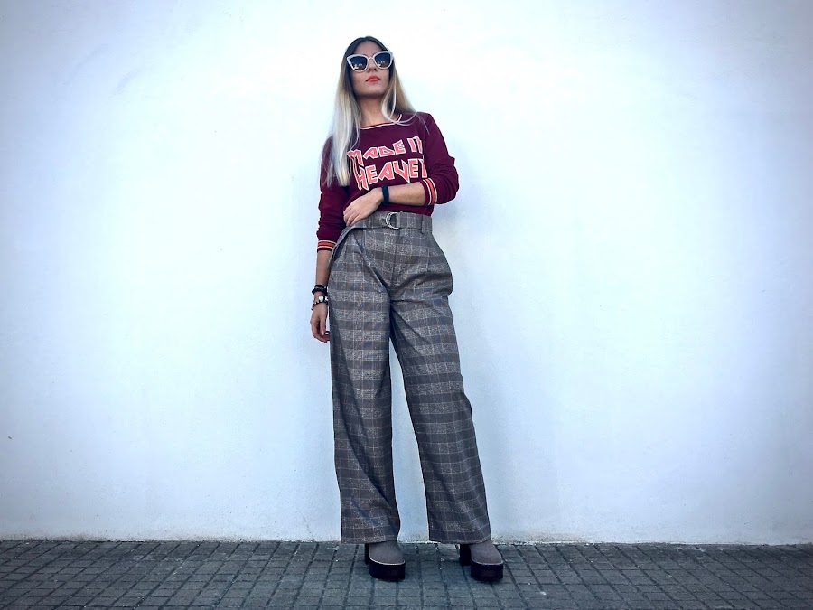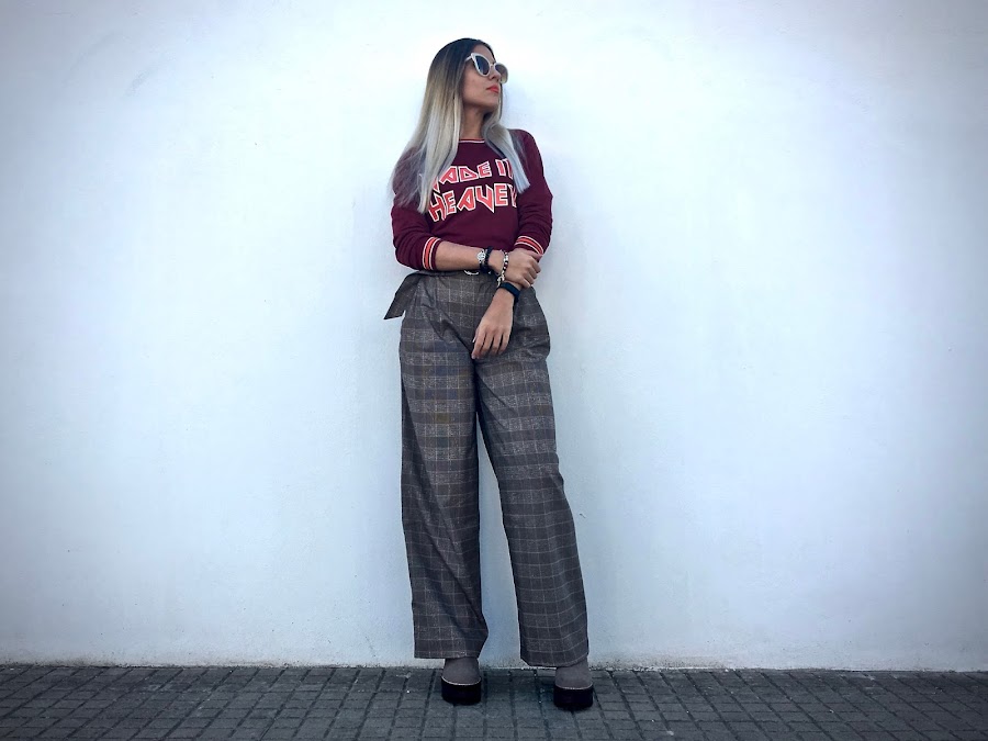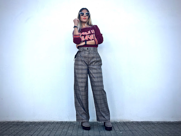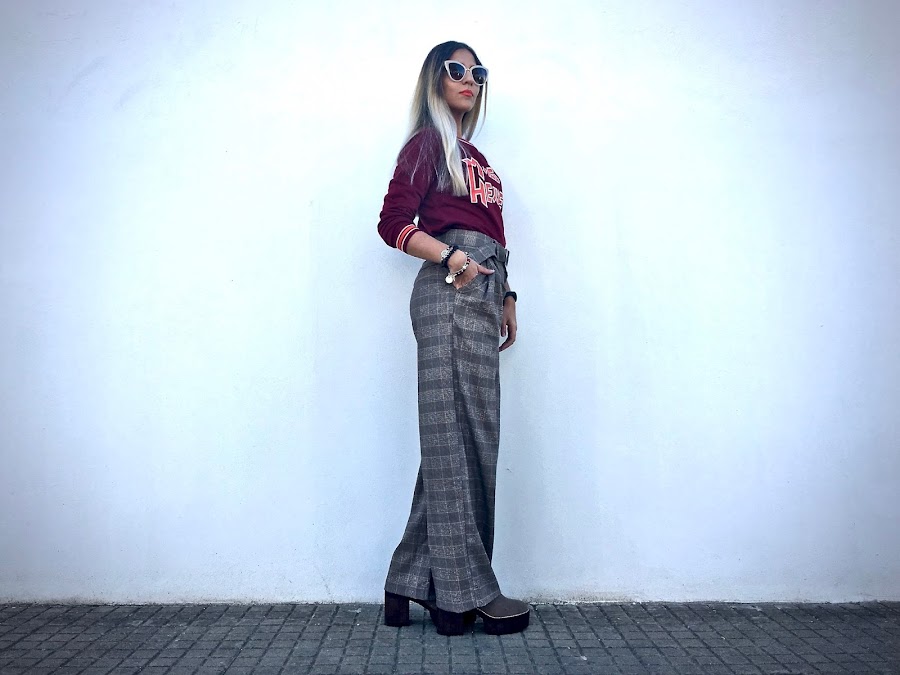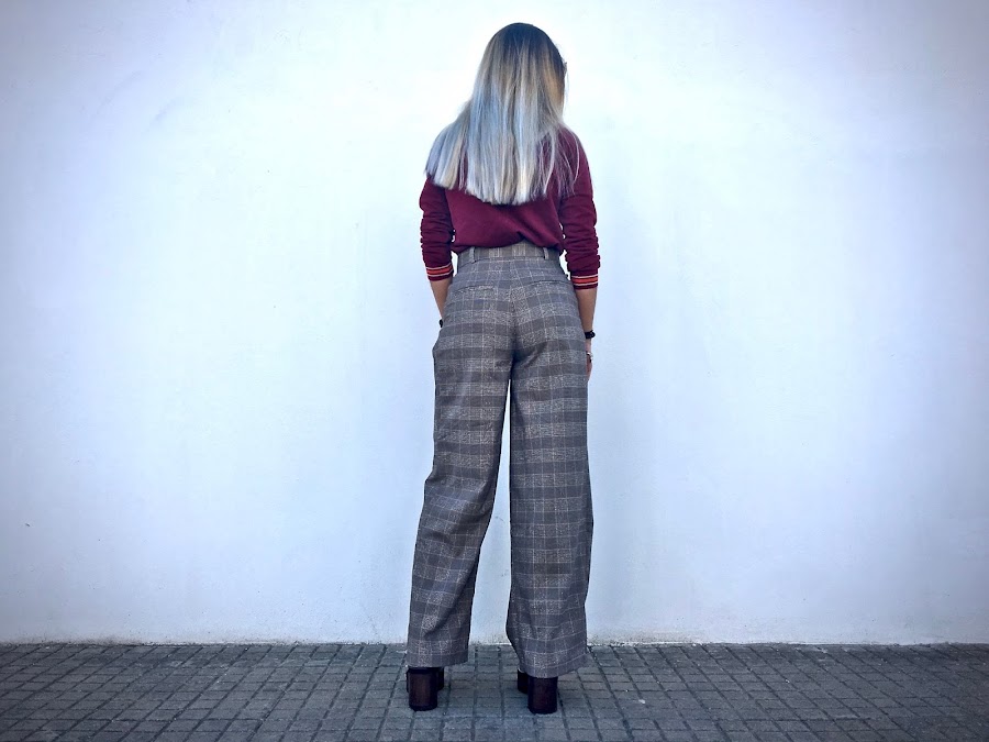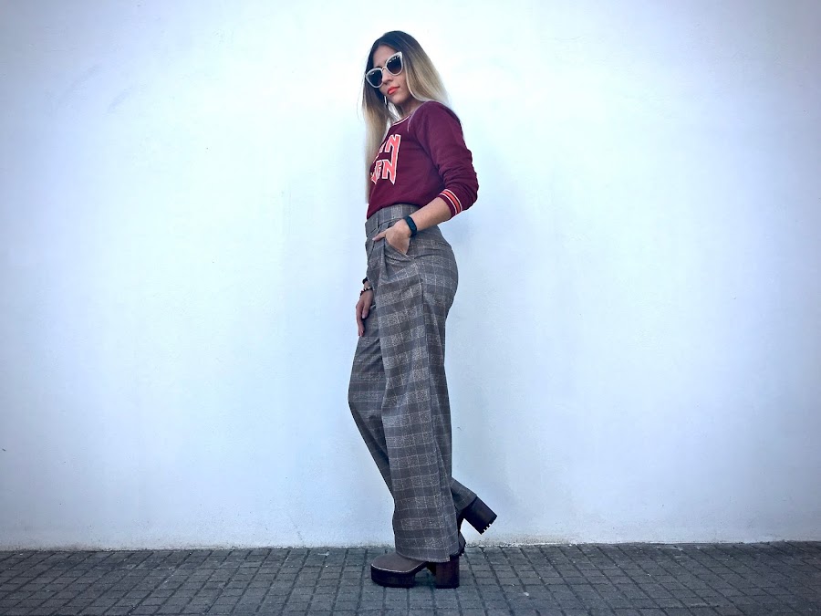 Lo he combinado con unos pantalones anchos de estampado de cuadros y unos botines!