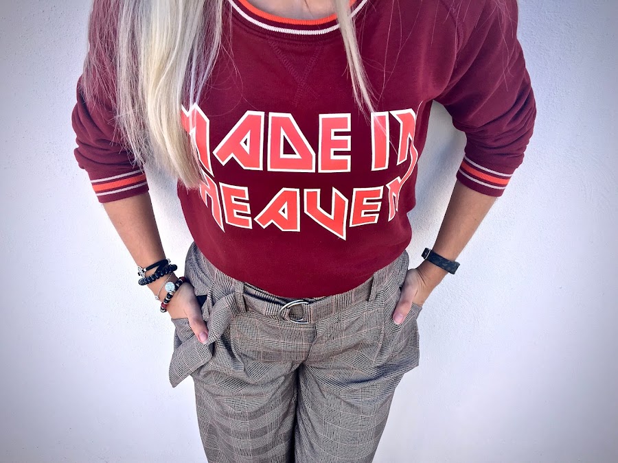 Hoy os traigo una sudadera súper molona de TEES AND DREAMS, una tienda que hace que soñemos con cada una de sus camisetas y sudaderas. Hechas en España con mucho amor y realizadas con algodón ecológico. Son todas preciosas! Yo he elegido esta sudadera de color burdeos y con estampado de letras Made In Heaven en tonos blancos y naranjas.