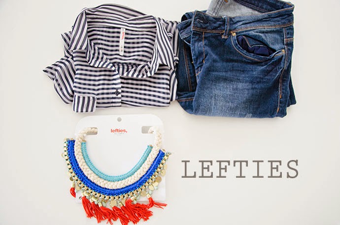 En Lefties compré cuatro cositas: una camisa sin mangas de rallas, un vaquero básico pitillo (completamente normal), unas bailarinas (he olvidade hacerles foto) y un collar con aire tribal.