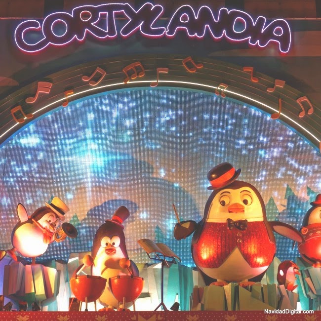 Muchas de las tiendas mas reconocidas del país han adaptado su estilo situando en estas plazas publicidad animada y dirigida principalmente a los niños, como en el caso del Corte Ingles y su muy bonita participación de "Cortylandia" que este año nos encanta con los famosos pingüinos simulando una orquesta.