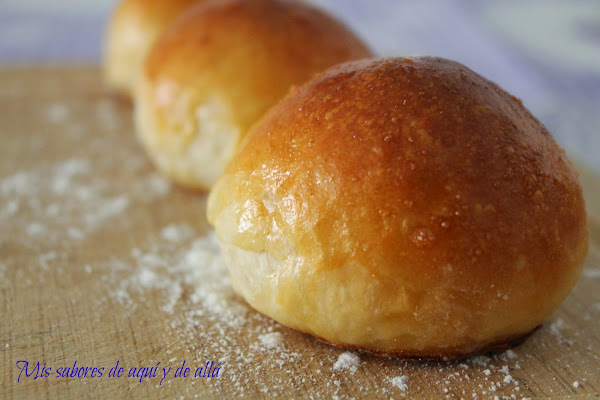 At home I"m the one who makes bread for everyone, for my husband, a big loaf with flour mixture, for my Syrian recipes, the corresponding Arabic bread and for my girls ... oh my girls !!! For them I make buns, but I hadn´t always succedd with the breakfast buns for school ... I tried a thousand recipes to satisfy those demanding palates until I finally found the perfect recipe, before "the discovery", I made oil buns, scones etc but these yogurt buns gave the spot, they are the ones my daughters wanted.