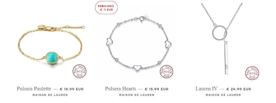 Pero además, si incluyes mi código LACESTITA10 podrás beneficiarte de un 10% de descuento adicional en los productos rebajados o bien un descuento del 10% en cualquier colección. ¿es genial o no? No podéis desaprovechar esta ocasión para poder haceros con una joyita o un accesorio ideal que causará las miradas del resto. Os dejo algunas muestras de lo que podéis encontrar en su web MAISON DE LAUREN