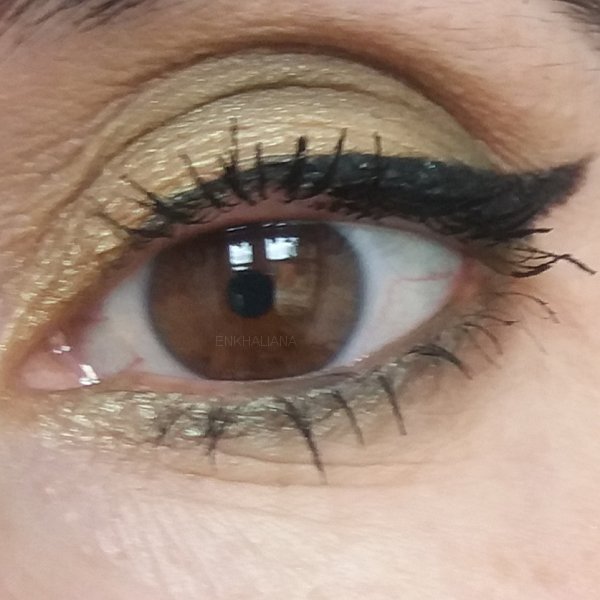 Me llamo mucho la atención por las sombras verdes que tiene, me gusta mucho las sombras de este color para ojos marrones porque creo que los favorece mucho, la verdad que la foto no le hace justicia a los colores, vamos que la cámara se come los colores y no te los pone como realmente son ya que la sombra de el parpada móvil es verde y la cámara esa empeñada en hacerla amarilla