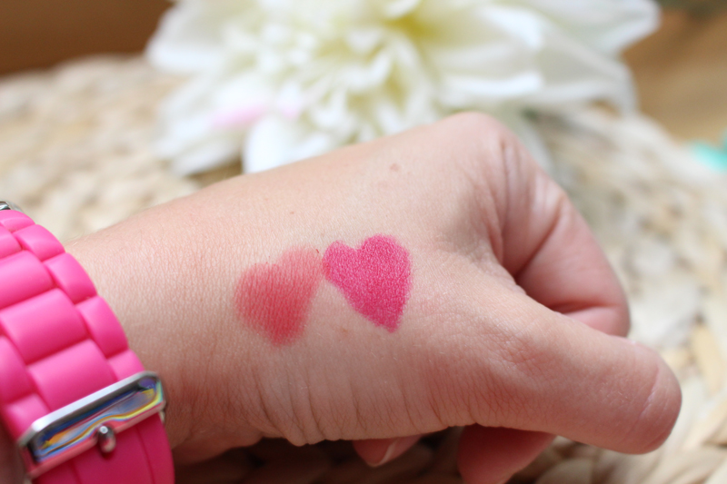 Aquí podéis ver el color de los dos labios y los diferentes acabados. Sí que se nota que es polvo el de la izquierda, ¿verdad? Ya que siendo los dos mates, hay mucha diferencia de textura.