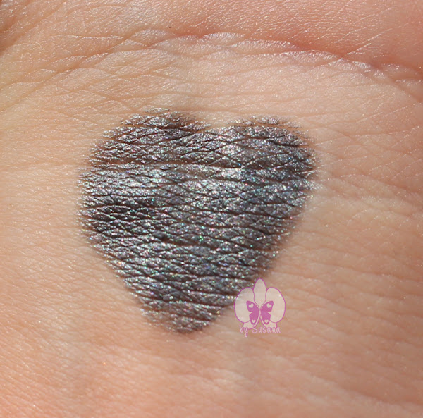 Soy súper fan de las sombras gris plata, me encantan los ahumados con este color y cuando vi esta sombra en lápiz dije tiene que ser mía. Como veis el color es un gris oscuro con destellos, muy cremoso que uso tanto como única sombra como de sombra base y encima una sombra en polvo para intensificarla. Me chifla, no puedo decir otra cosa.