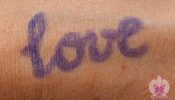 Os he querido hacer esta palabra con el lápiz por dos razones, una de ellas para ver la muestra de otra forma, no como siempre con una línea y también porque estoy totalmente "in love" con este lápiz, tanto por su color como por su pigmentación y duración en el párpado. Me encanta delinearme el ojo con este lápiz morado y salirme del clásico negro. Es un color que para mi gusto queda muy favorecedor y da al ojo un toque muy bonito.