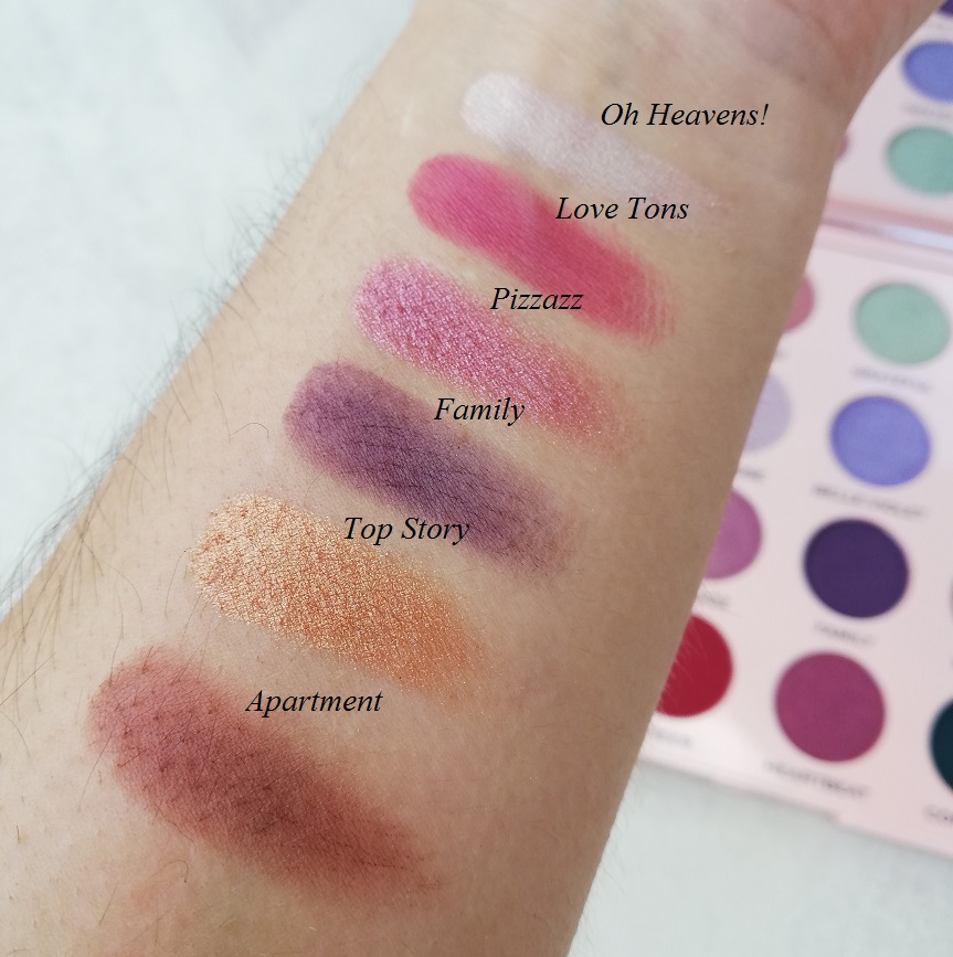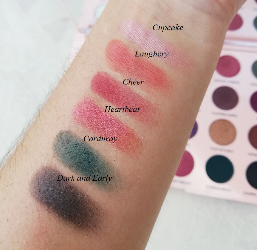 Para que os hagáis una idea de como son, os dejo swatches de todas las sombras, por orden de fila, de arriba a abajo. Los swatches están hechos con el dedo sobre el brazo, sin prebases.