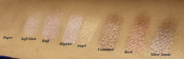 Los swatches están hechos con el dedo y no tienen ni prebase ni filtros. Como podéis comprobar, la pigmentación es excelente ya que incluso los mate, se ven bien con una sola pasada. En la primera fila hay uno que parece que falte aunque está allí, el problema es que al ponerlo sobre el brazo, coincide con el color de mi piel, y por eso no se ve.