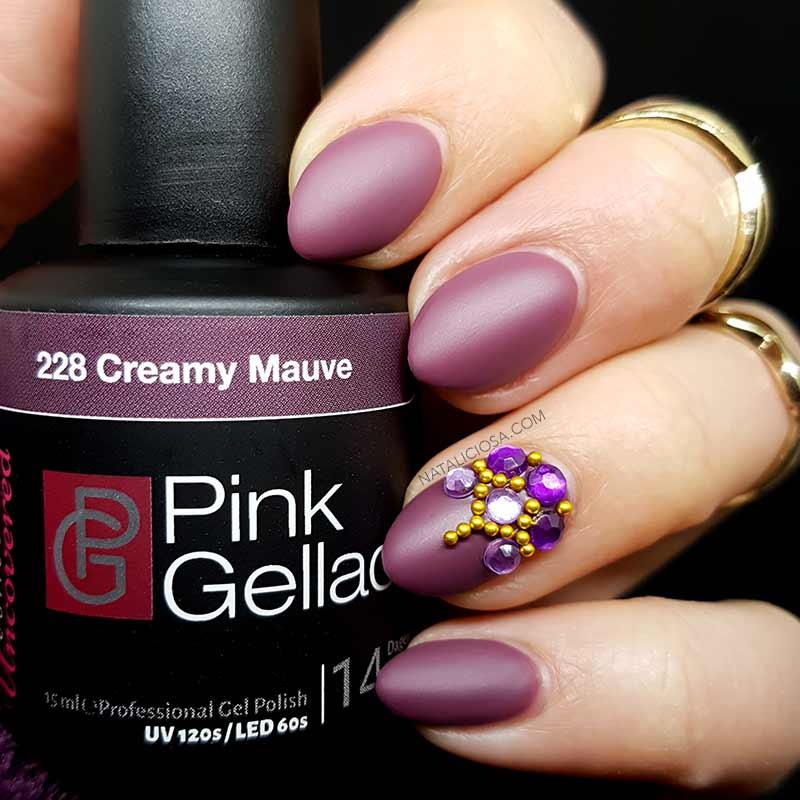 De todas maneras, lo que más me gusta de esta manicura de hoy es que me he animado a matificar este esmalte tan precioso de Pink Gellac. Esta casa tiene un top coat especial matificante de laca semipermanente, aunque como no lo tengo yo utilicé un top coat de esmalte normal, de Flormar. Me he quedado prendada de lo bonito que queda el tono Creamy Mauve en mi forma de uñas y matificado, ¡lo veo súper elegante!