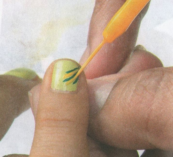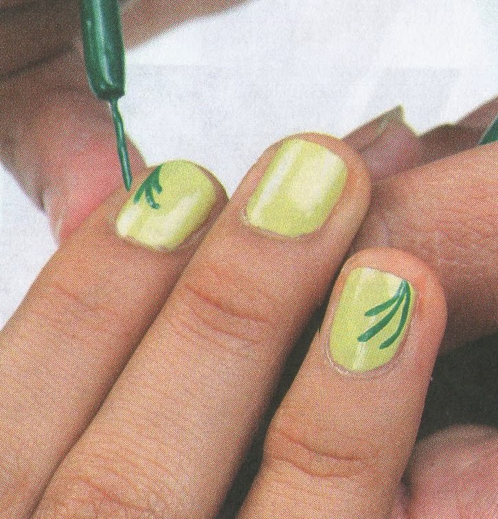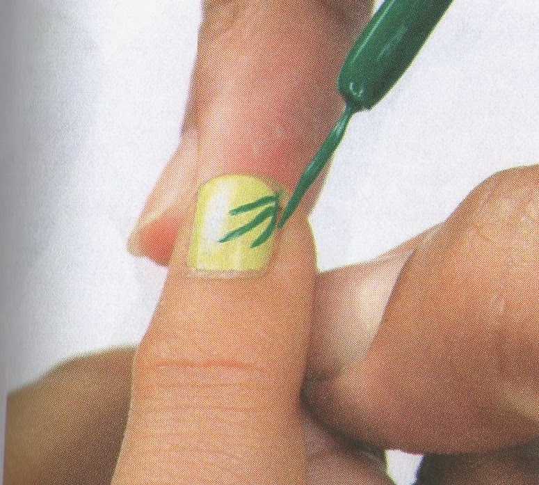 5-Hacer lineas con esmalte amarillo entre las ramas verdes.
