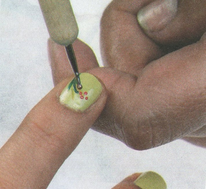 6-Poner cuatro puntos con el esmalte de color rojo utilice un punzón.