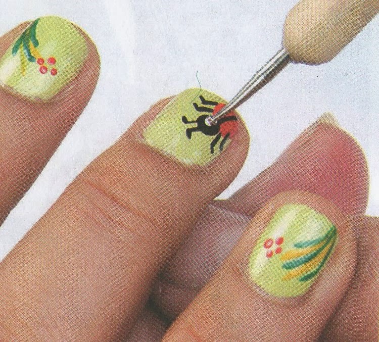 9-Con un abrocha delgada y un esmalte de color negro dibujar los detalles del escarabajo.
